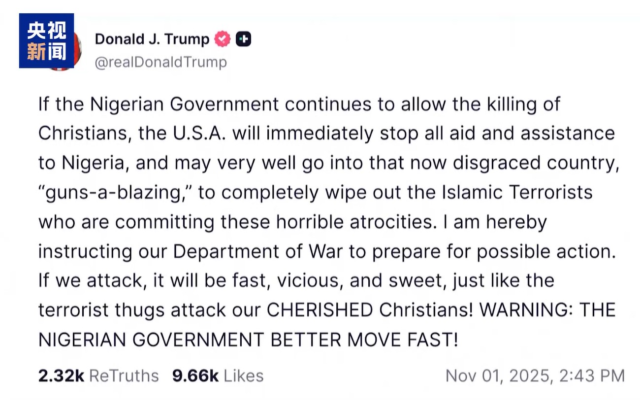 Az Egyesült Államok elnöke katonai akcióval fenyegetőzik Nigéria ellen