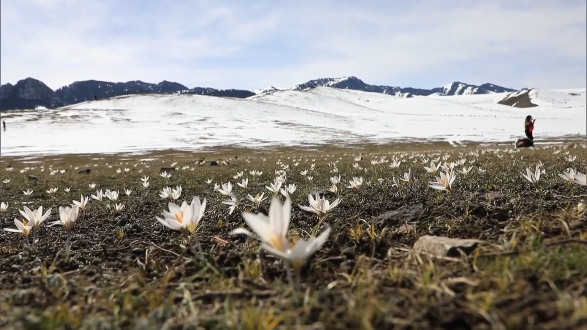 A Wusun-hegy alatt a "felső jégvirág" tavasszal virágzik