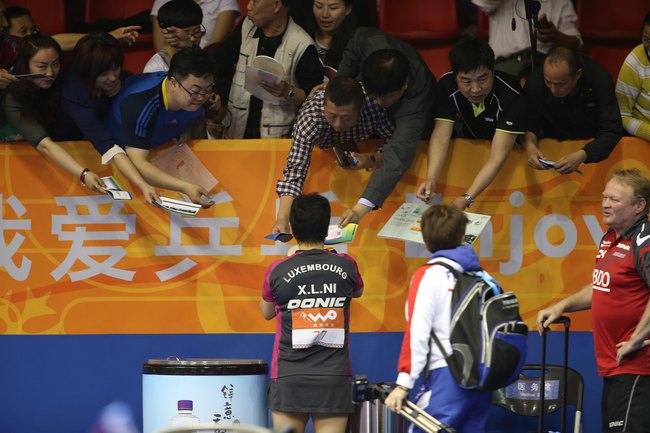 Ni Xialian és férje a 2015 évi asztalitenisz világbajnokságán