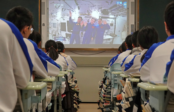 A kínai űrállomásban tartott űrbeli tanórát a CMG élőben közvetítette. Ezzel egy időben Kínában öt „távoli tantermet” hoztak létre Pekingben, Wenchuanban (Vencsuan), Nanningban, Hongkongban és Makaóban, ahonnan nemcsak nézhették az órát, hanem kérdéseket is feltehettek a diákok. A „pezsgőtabletta kísérlet” bizonyult a legnépszerűbb tesztnek, ami mellett a kínai állomáson jelenleg tartózkodó három kínai űrhajós még megmutatta a Tianhe (Tienho) nevű űrszondán a lakhatási és munkakörülményeket, beszéltek az űrbéli kísérletekről és bemutatták az űrállomáson tartózkodó tajkonauták és a tárgyak mozgását, továbbá a vízfelületi feszültséggel kapcsolatos tesztet is láthattak az iskolások.